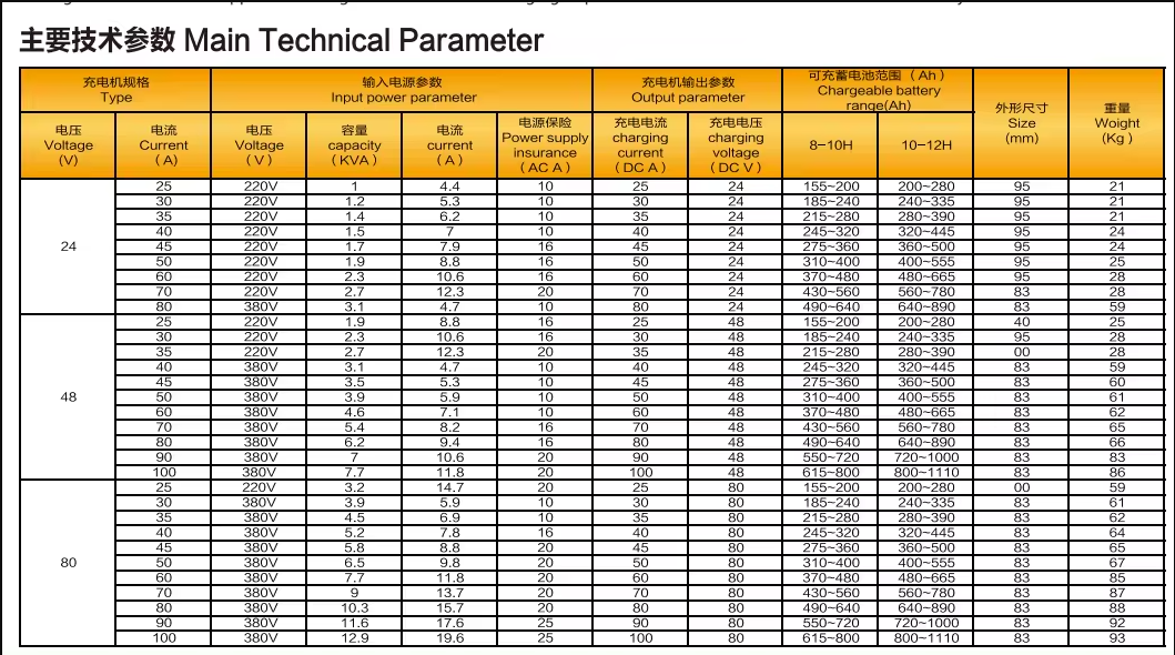 The main circuit of CZB6E Series intelligent charger use reliable leakage transformer ,rectifier diode and charge controller to achieve standard control of Wsa charging control; The built-in charging curve adopts the optimized sufficient judgment method to monitor the status of the battery, the charging current and the voltage value in real time, and adapt to the changes of the charging machine parameters in time can meet charging requirement of different batteries in different applications and work conditions automatically.