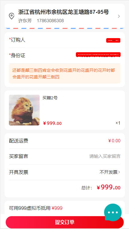 2)下單填寫訂購(gòu)人姓名和身份證號(hào)碼