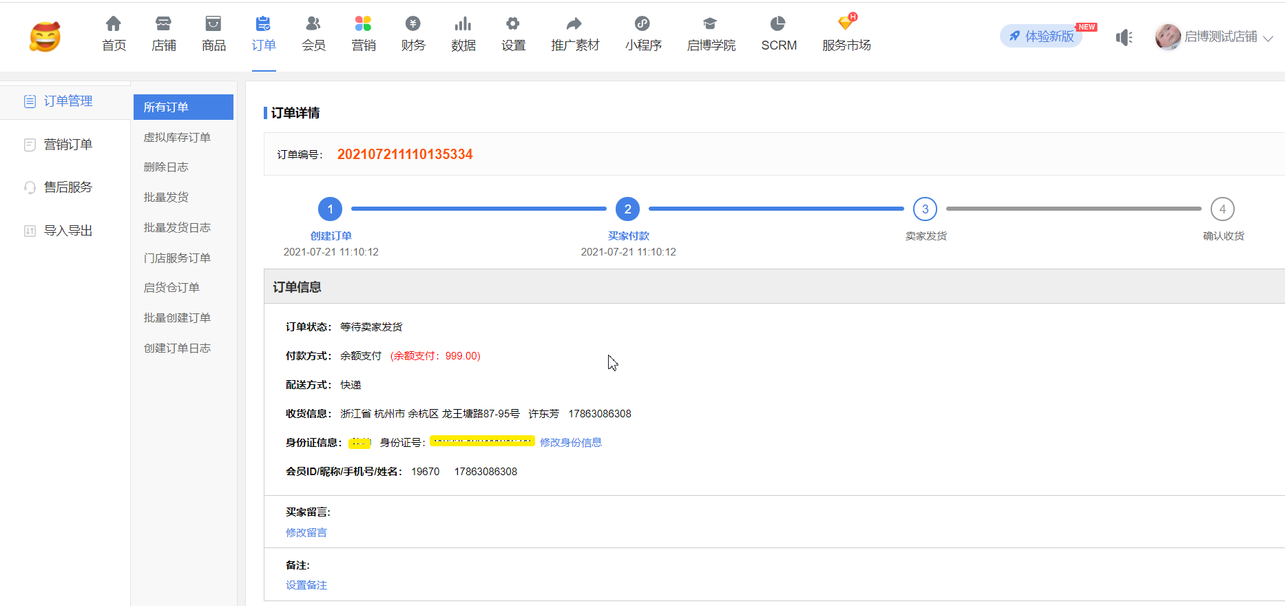 4)后臺(tái)訂單詳情顯示姓名和身份證號(hào)碼