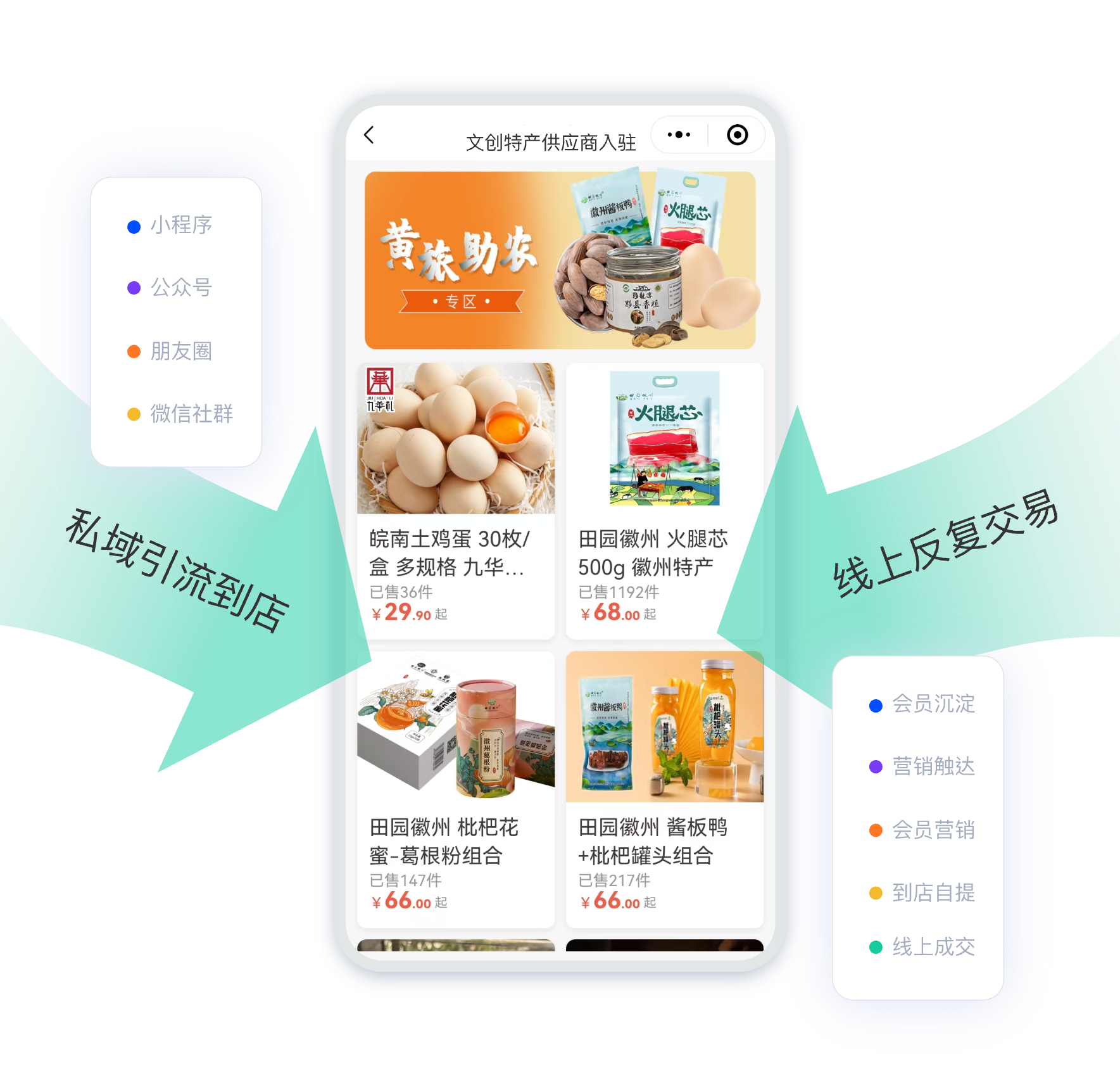 整合線上營銷渠道,打造私域流量池,通過精準(zhǔn)營銷和會員運(yùn)營,實(shí)現(xiàn)線上引流到店,提升商圈客流量和經(jīng)營業(yè)績。