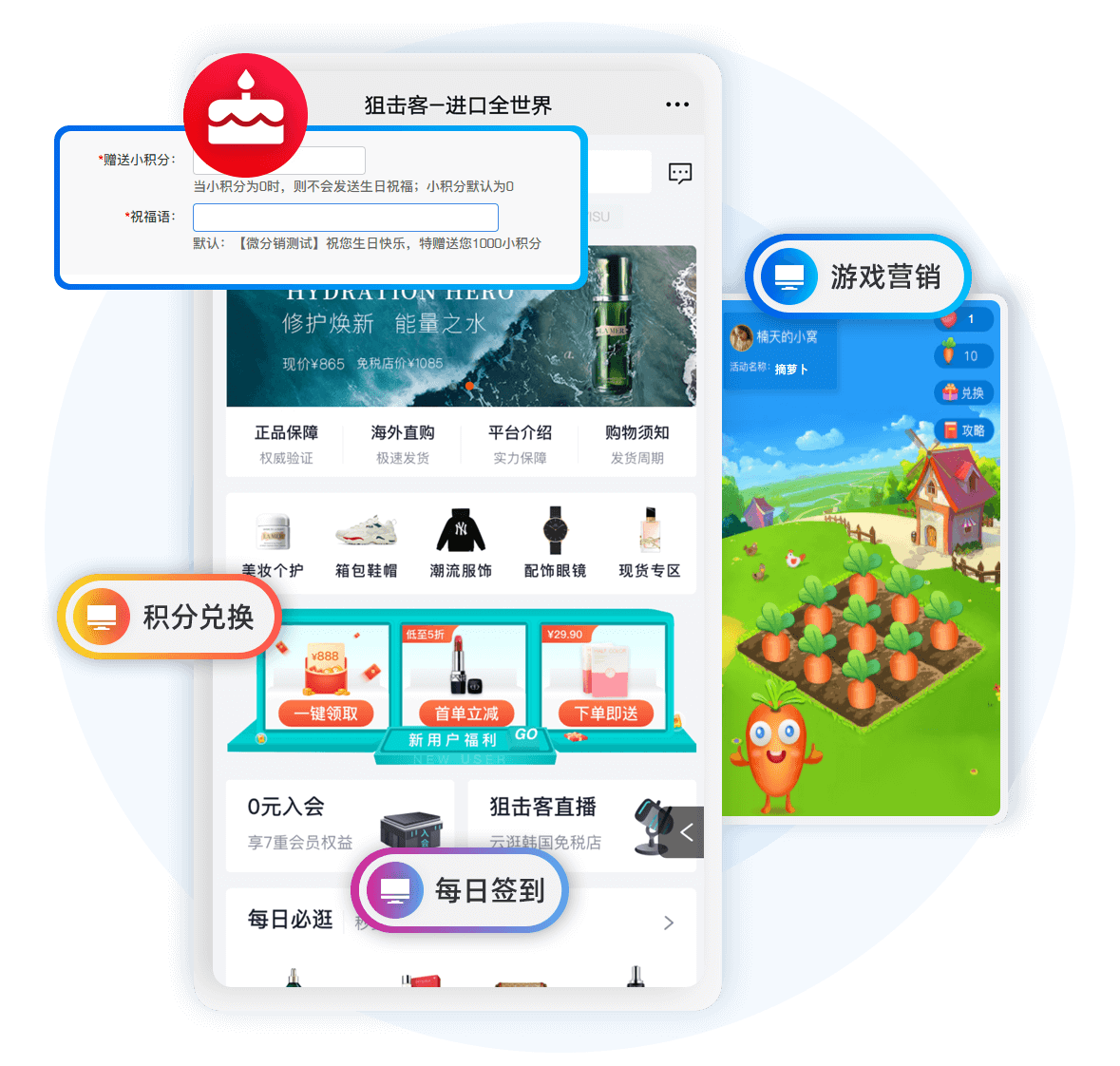互動(dòng)促活每日簽到、積分兌換、生日營(yíng)銷(xiāo)、游戲營(yíng)銷(xiāo)等,促進(jìn)會(huì)員粘性,培養(yǎng)會(huì)