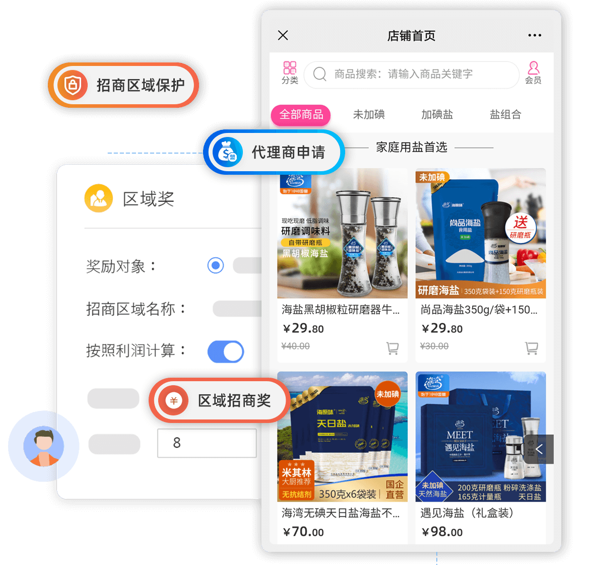 線上代理加盟模式,支持區(qū)域、非區(qū)域劃分,裂變式招商獲客更簡(jiǎn)單 -