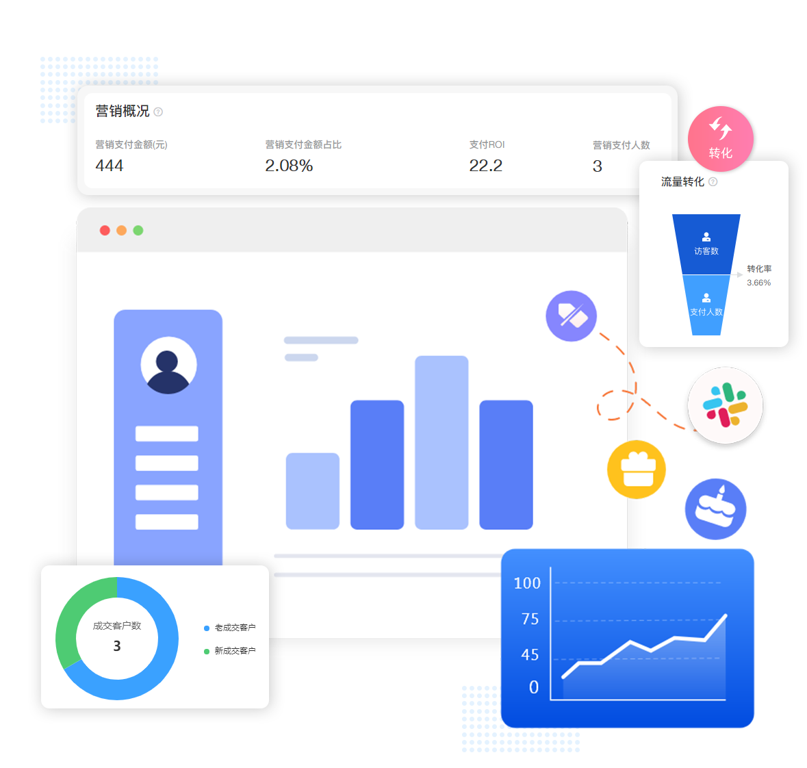 營(yíng)銷(xiāo)數(shù)據(jù)對(duì)各種營(yíng)銷(xiāo)策略活動(dòng)數(shù)據(jù)進(jìn)行大數(shù)據(jù)分析,不斷復(fù)盤(pán)活動(dòng)效果,驅(qū)動(dòng)營(yíng)