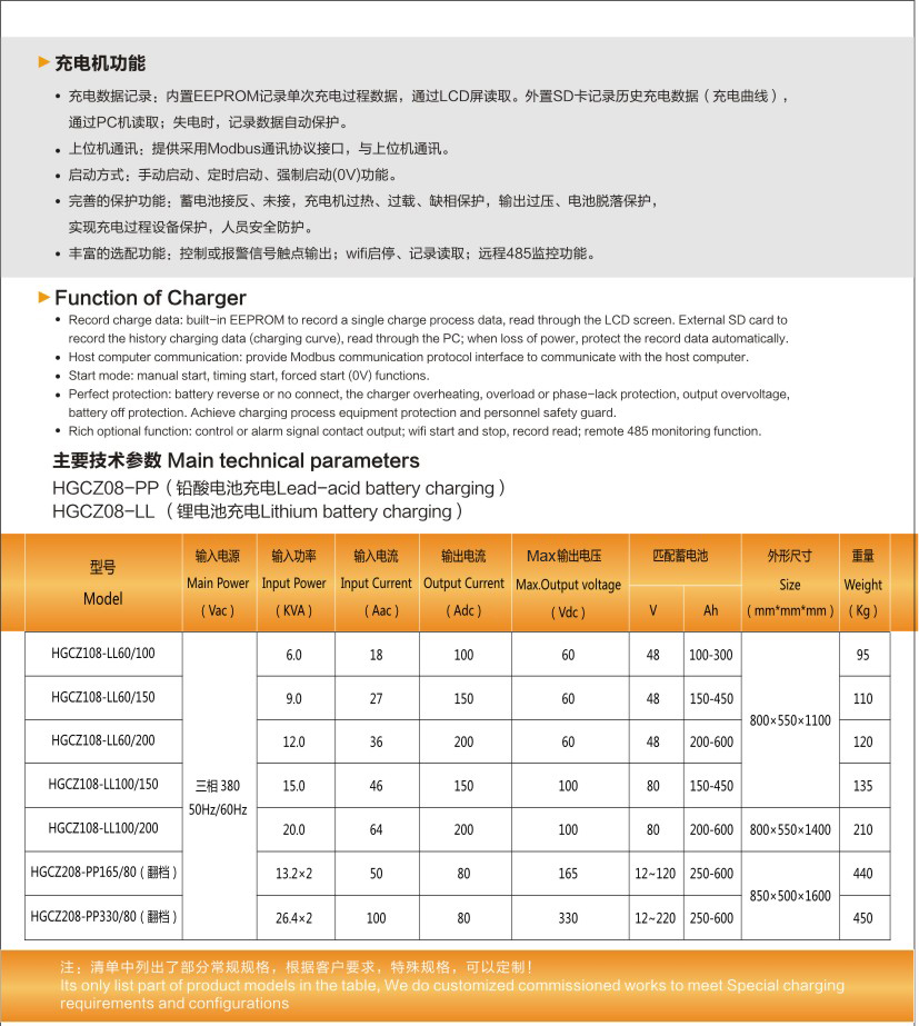 HGCZ08系列智能充電機用高性能嵌入式充電控制單元控制充電電流,通過參數優化設計的主電路,為各種蓄電池、鋰電池提供連續可調的充電電流,滿足各種充電工藝要求。