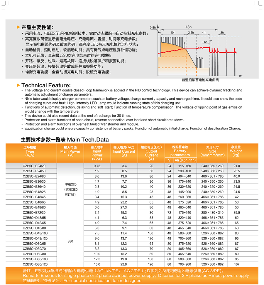 適用于電動托盤車、電動叉車、電動搬運車、電動升降車、電動游覽車等各種電動車輛上的鉛酸蓄電池的充電。