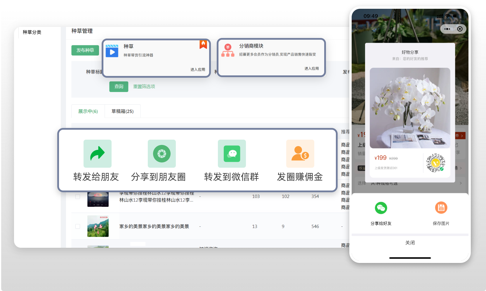 結(jié)合上門服務(wù)的情況,收集視頻素材,利用視頻種草功能,傳播服務(wù)品質(zhì);其次通過分銷商功能,讓你服務(wù)過的客戶利用社交口碑進(jìn)行裂變分享,享受額外返現(xiàn),返現(xiàn)可用于下次服務(wù)進(jìn)行抵扣。